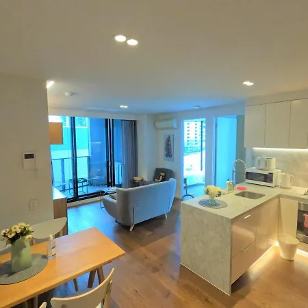 A fully furnished kitchen is provided at Cbd 3B2B Private Apt Lighthouse The café serving Australian cuisine is 300 metres away.
